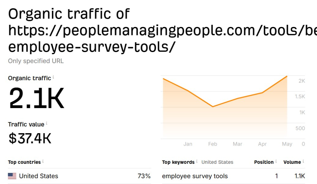 - We secured high-authority backlinks from HR, remote work, and leadership-focused websites, emphasizing thought leadership and comparison content around trending people management tools.