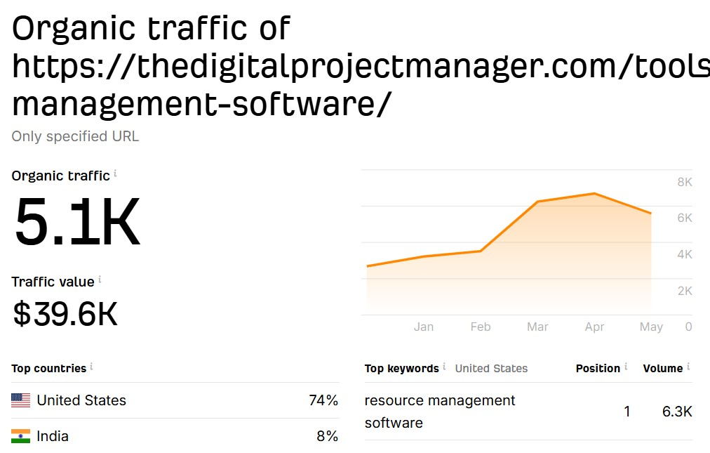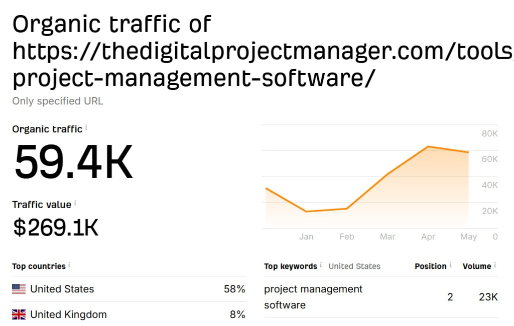 | The Digital Project Manager | 74 → 77 | 74 | Evergreen content, SaaS/PM blogs |
